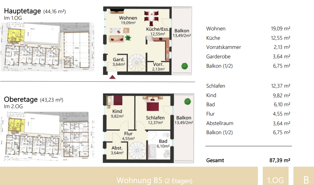 Leben auf 2 Etagen – 3 Zimmerwohnungen